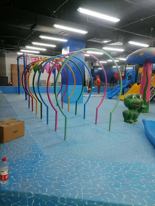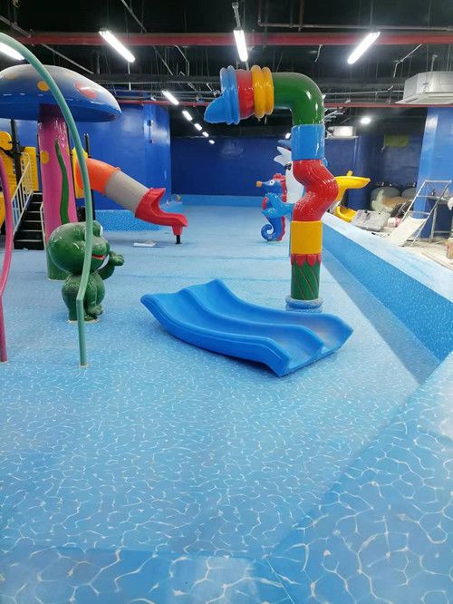 本項(xiàng)目位于貴州省貴陽(yáng)市,為室內(nèi)戲水池項(xiàng)目,采用1.5mm顆粒防滑水波紋游泳池防水膠膜,整體效果如下: